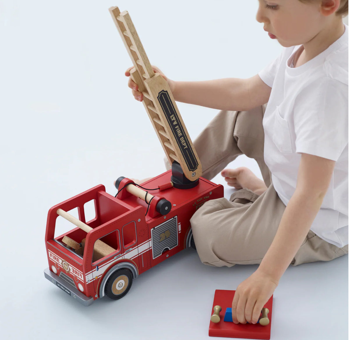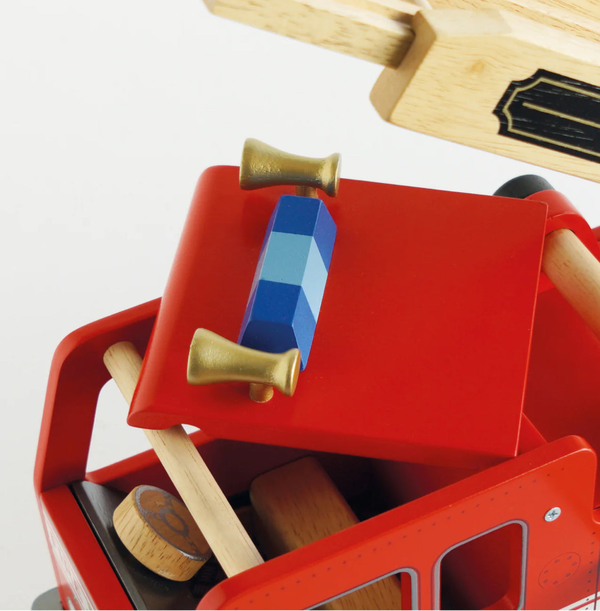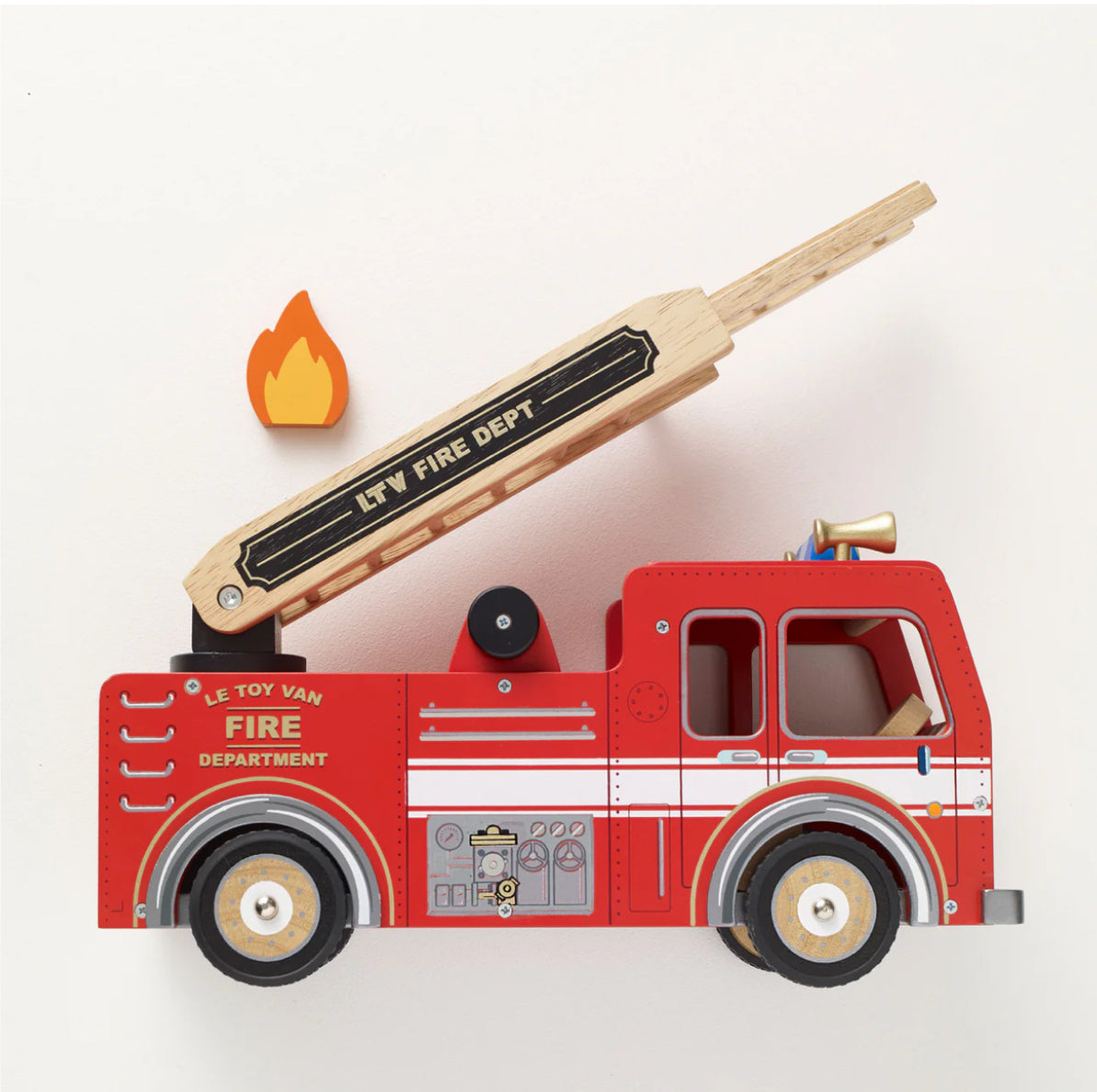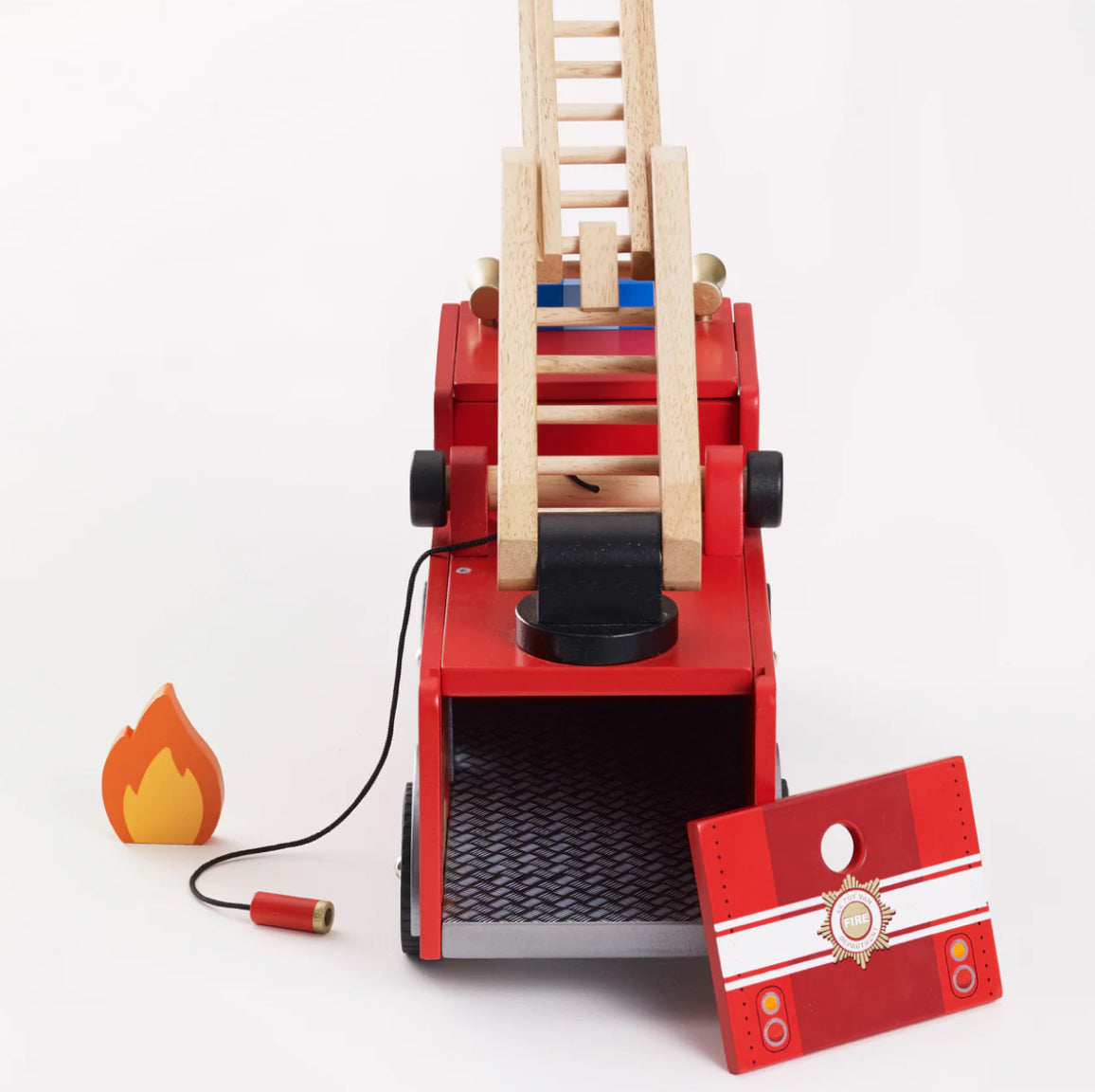 כבאית עץ אדומה וגדולה במיוחד, עשויה עץ איכותי וצבועה בצבע אדום