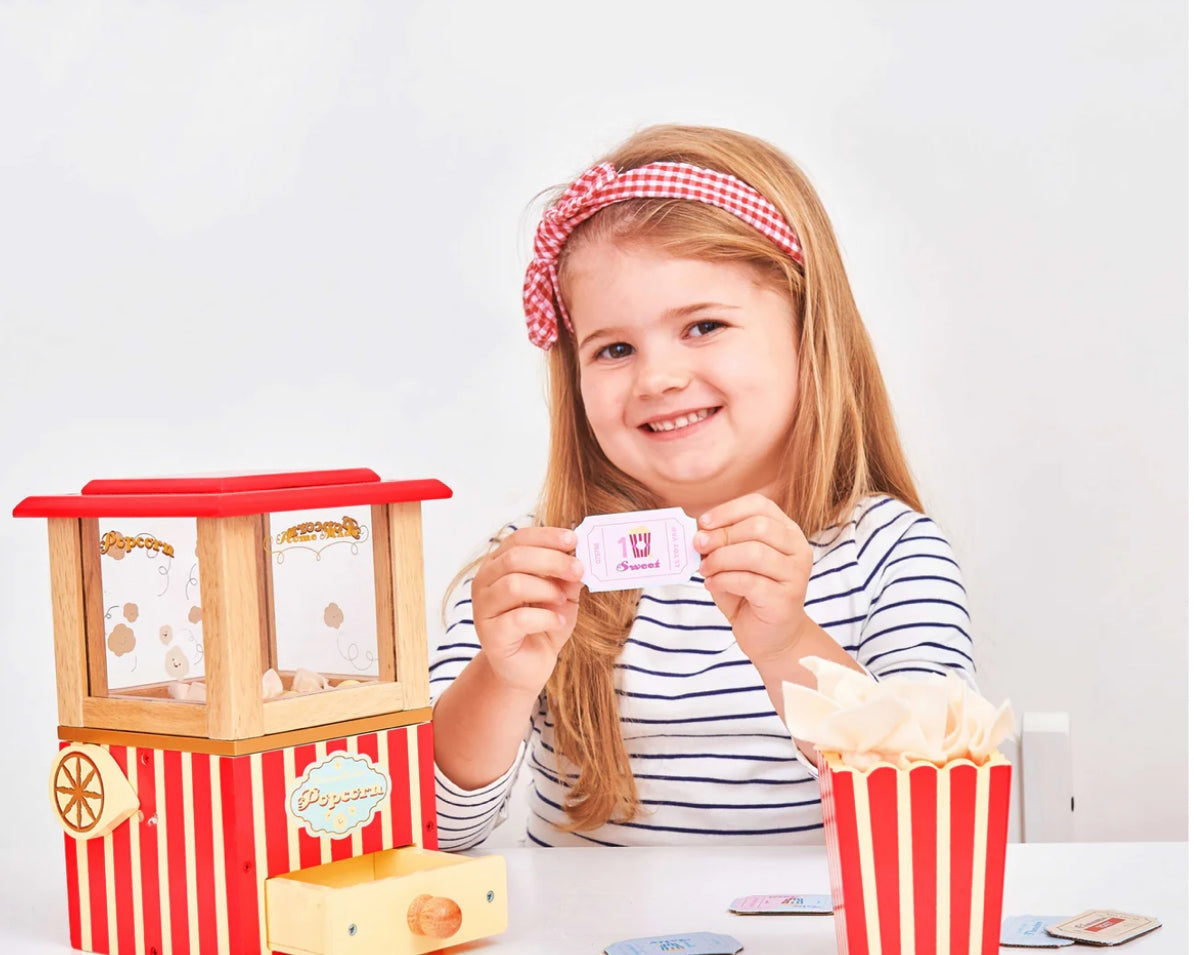 מכונת הפופקורן מעץ הינה צעצוע מושלם עבור הקטנטנים לצורך שיפור המוטוריקה העדינה שלהם, וכן לתרגל את כישורי הדיבור והאינטראקציה החברתית שלהם.