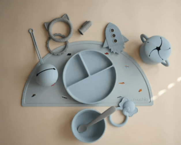 צלחת סיליקון נצמדת מחולקת - בלו