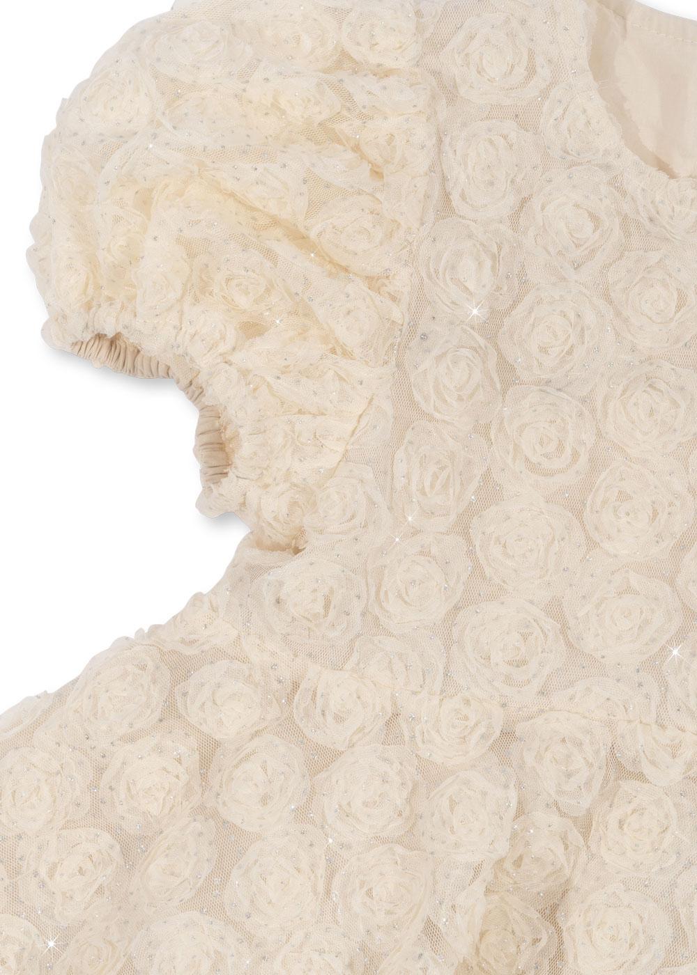 שמלה אלגנטית עם שרוולים תפוחים ושכבות טול שמוסיפות נפח מרהיב