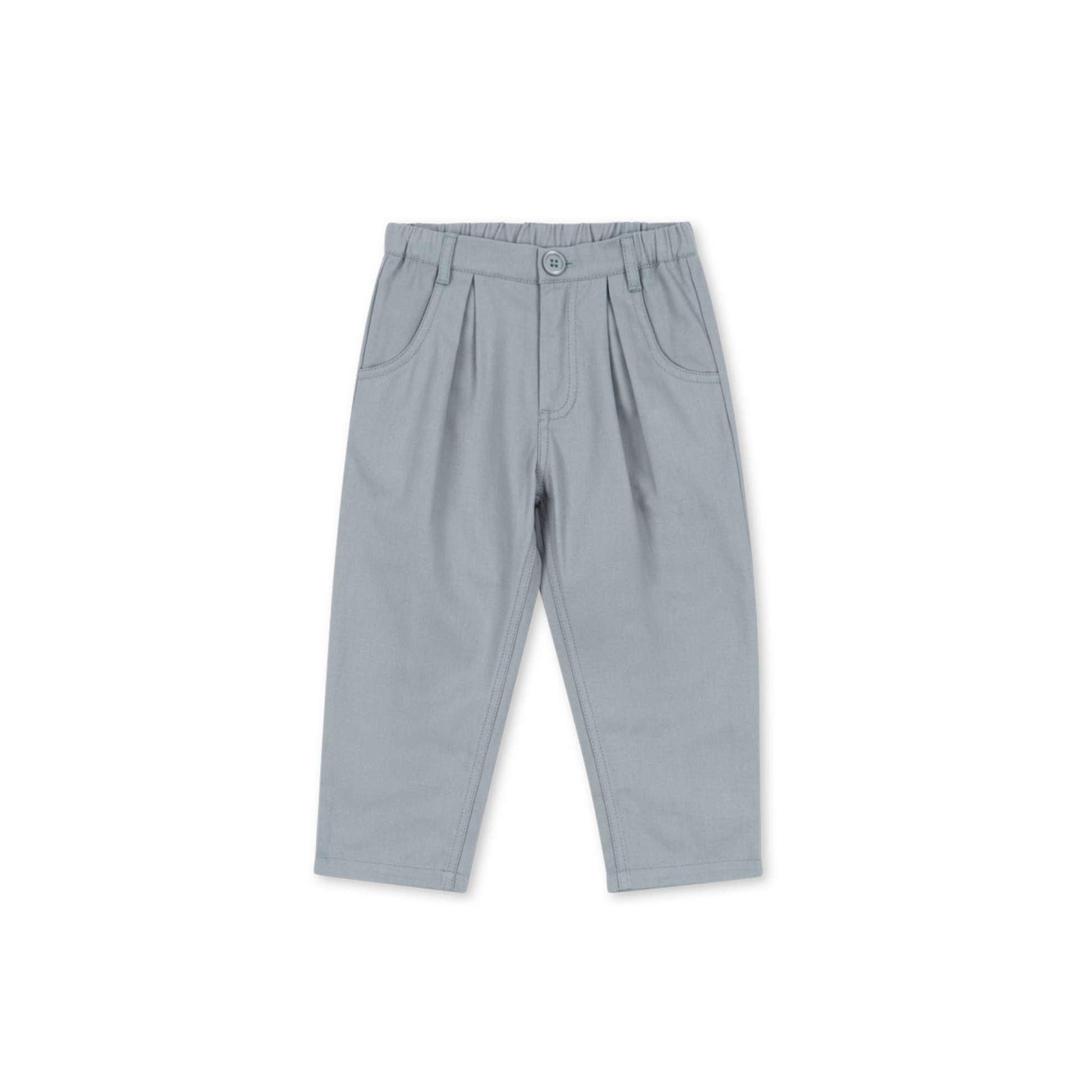 מכנסיים רכים מבד אריג כותנה מעט כבד יותר. עיצוב קלאסי עם כיסים קדמיים, זבוב מזויף וכפתור בודד מלפנים. עשוי מ-100% כותנה אורגנית GOTS, אורגני, מאושר על ידי CU1094701