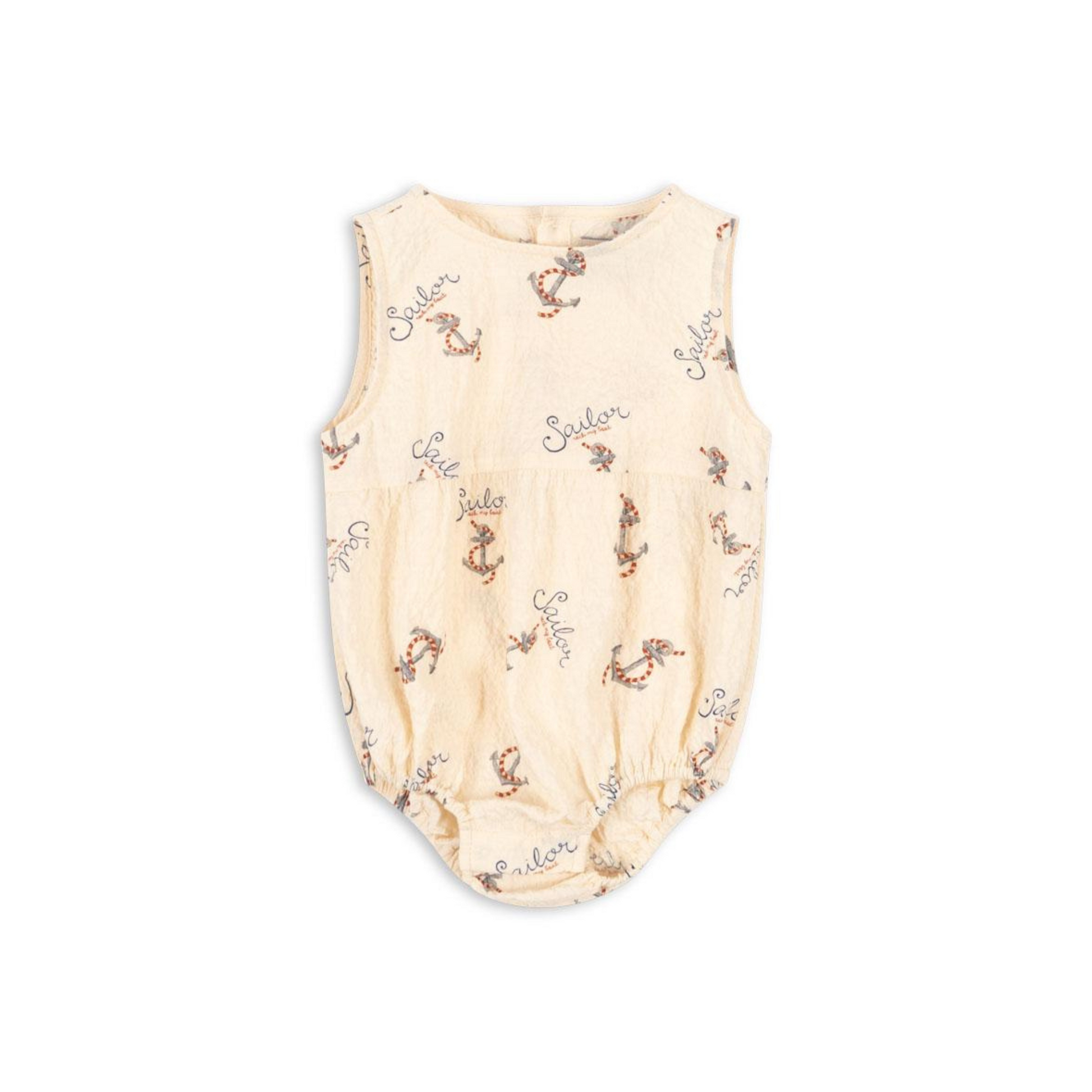 אוברול עשוי בד סירסאקר רך למגע. עיצוב פרקטי עם תיקתקים בפתחים התחתונים להלבשה קלה ונוחה של התינוק. חומרים: 98% כותנה אורגנית, 2% אלסטאן, בעל תקן GOTS אורגני, מוסמך על ידי CU1094701.