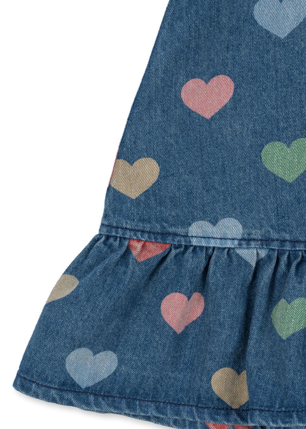 שמלת דנים באיכות כותנה אורגנית רכה ועמידה, עם מחשוף V בחזית וחצאית מתרחבת מחמיאה.