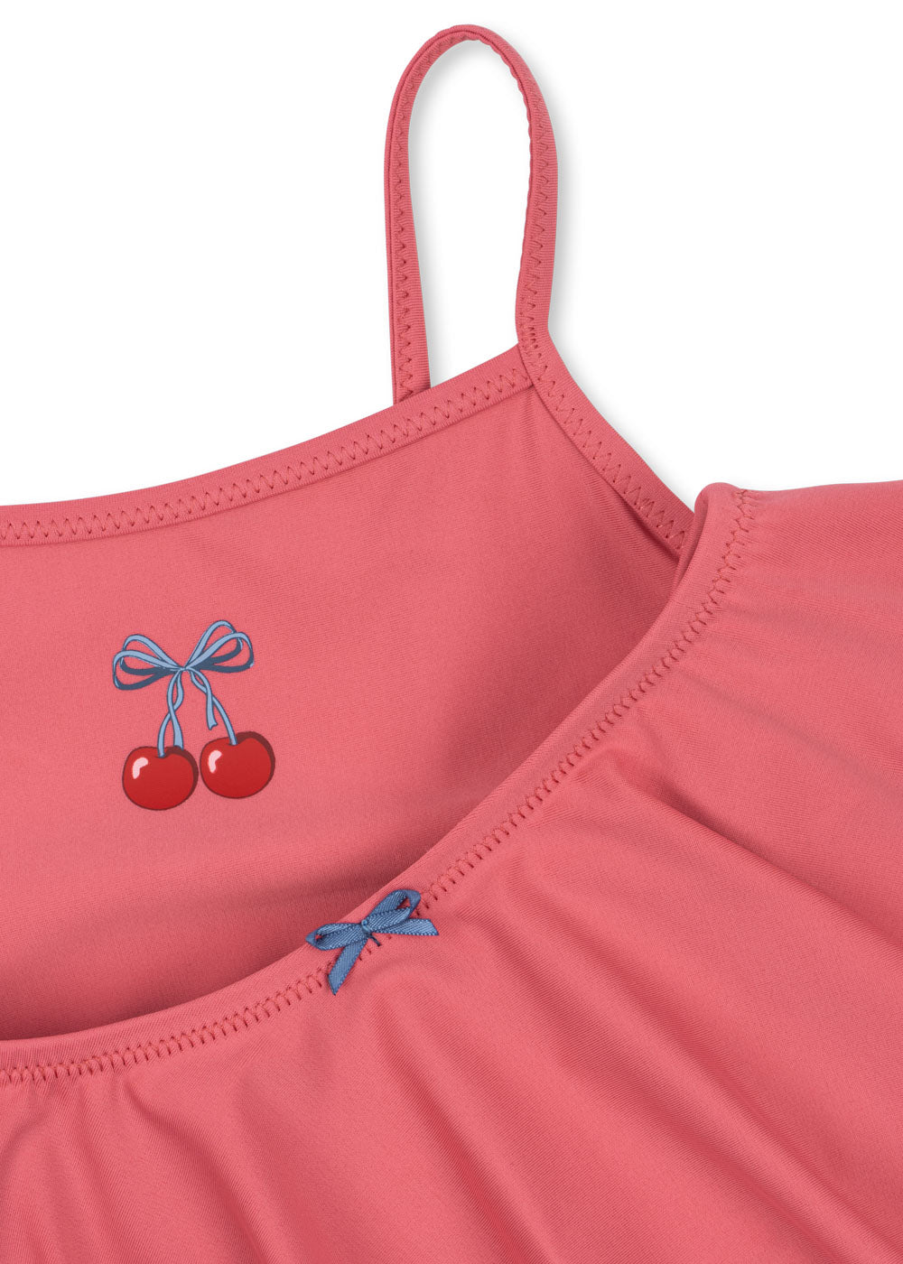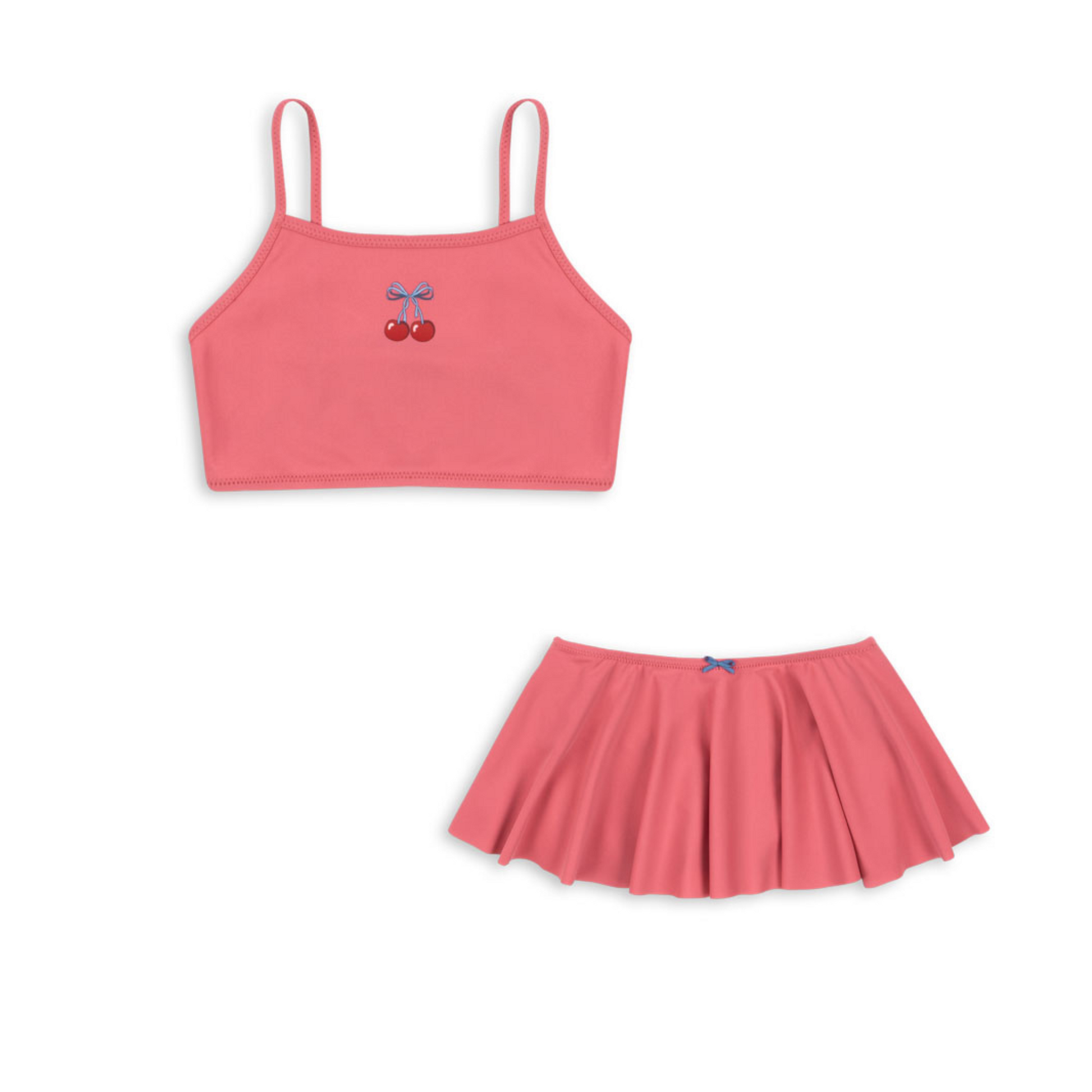 ביקיני רך. החלק העליון מעוצב עם חיתוך מרובע, והחלק התחתון עם אפקט חצאית.