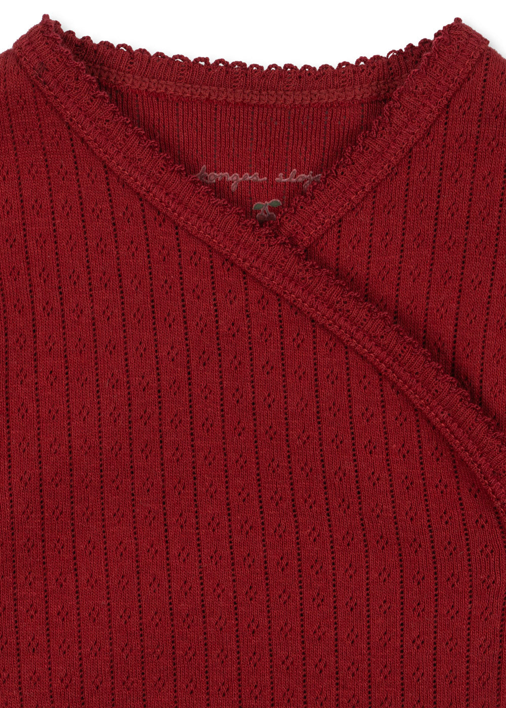 בגד גוף רך עם דוגמת פוינטל דקורטיבית וסגירת עטיפה נוחה. כפתורי לחיצה לאורך הצד ובאזור המפשעה מאפשרים הלבשה קלה.
