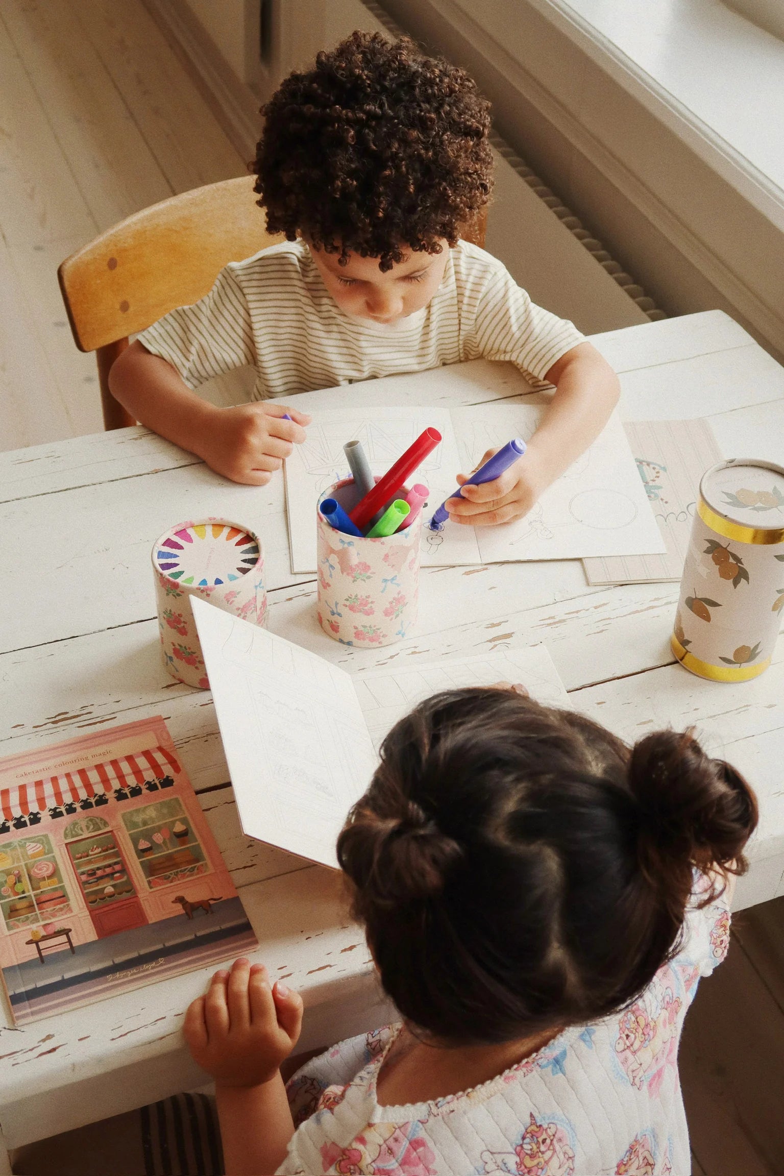 ערכת טושים הכוללת 16 טושים שונים על בסיס מים. הטושים מגיעים בתוך קופסה גלילית כל כך חמודה, שפשוט אי אפשר שלא להניח אותה על השולחן כמעמד דקורטיבי לטושים ולעפרונות היצירה שלך.