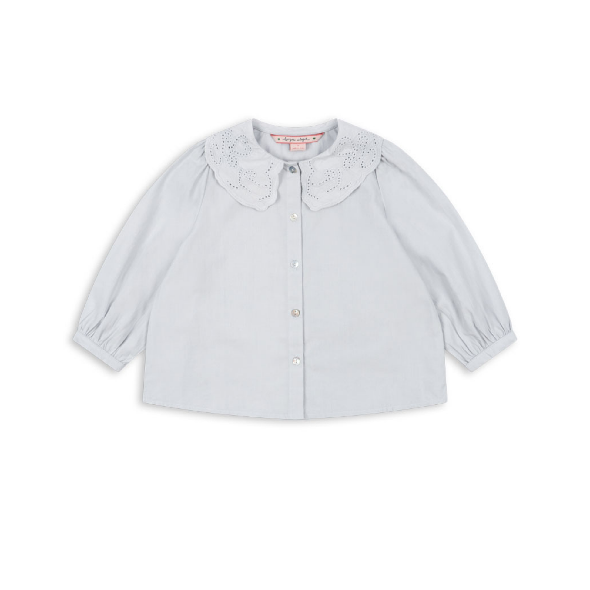 חולצה רכה עם צווארון ברודרי אנגלז׳ דקורטיבי וכפתורי אם הפנינה.