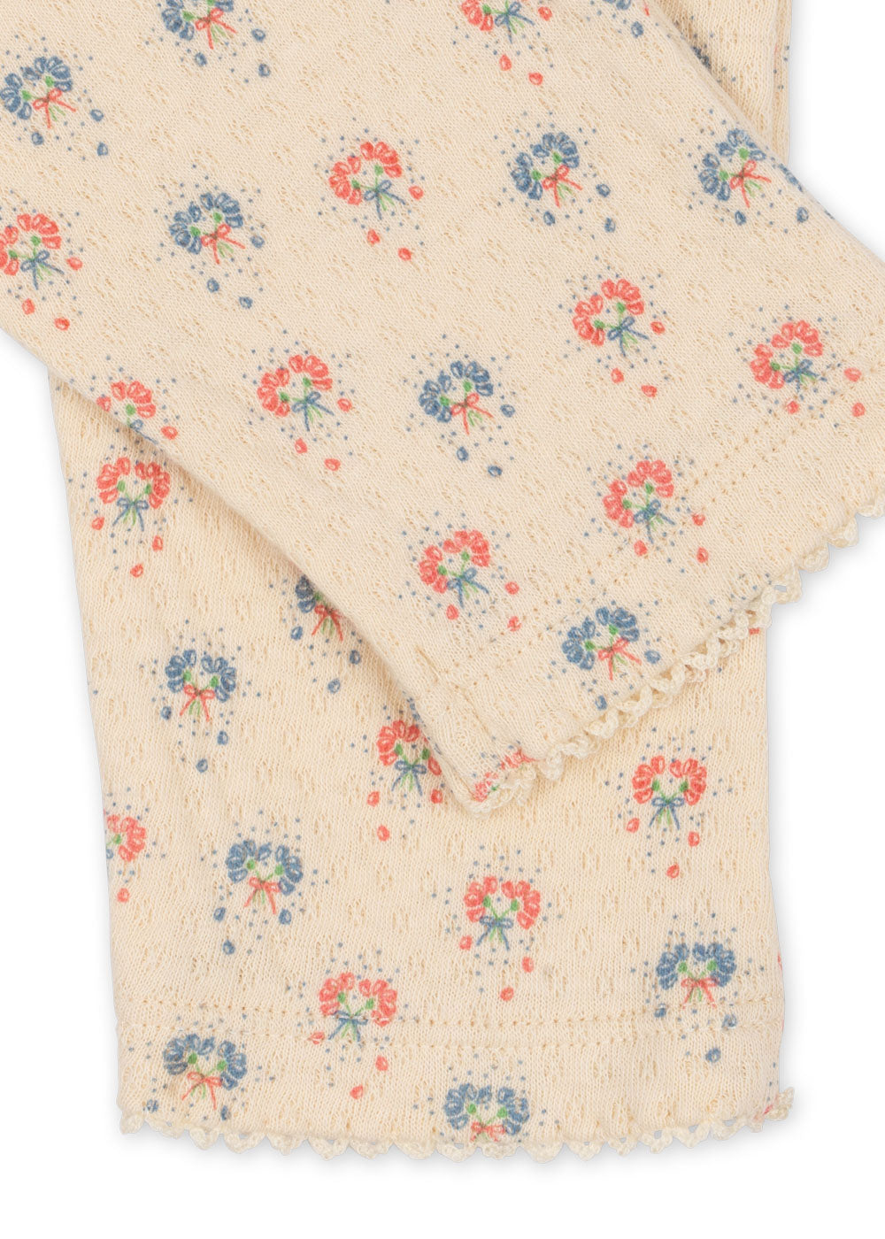 מכנסי כותנה רכים עם נקודות דקורטיביות. מעוצבים עם פרנזים בגב.