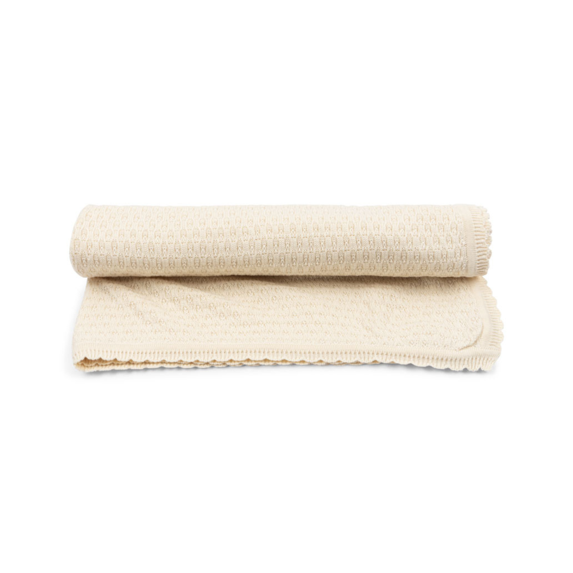 שמיכה רכה בסריגת פונטל עדינה. עשויה מ־100% כותנה אורגנית רכה ונושמת. מושלמת כשכבה קלה נוספת בזמן שנת צהריים.